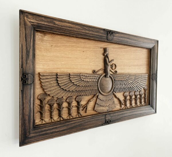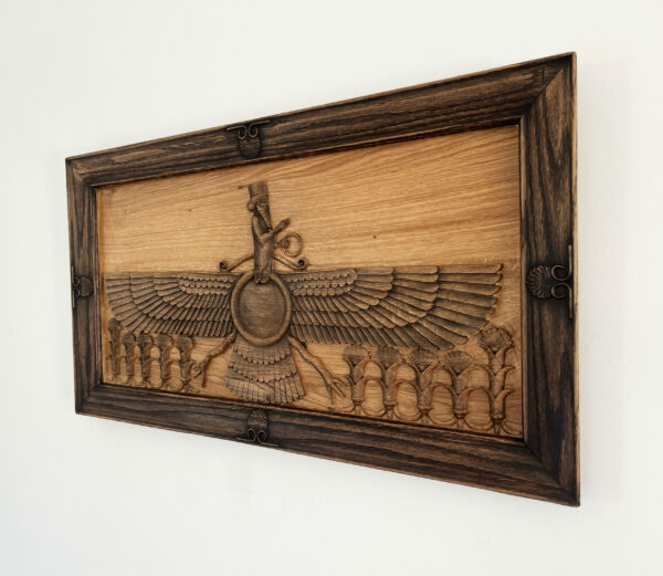 Ahura Mazda Sclupté en bois 80×43 (recadré)
