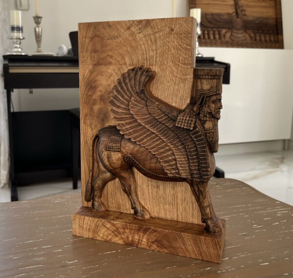 The bas-relief of the Gate of Nations at Persepolis embodies the majesty of the Achaemenid Empire through its monumental architecture and rich symbolic ornamentation. Designed during the reign of Xerxes I, this monumental gate served as a solemn entrance for delegations from the four corners of the empire. One of the most remarkable features of this structure is the representation of winged bulls with human heads, known as **lamassu**. These mythological creatures, of Mesopotamian origin, symbolise strength (bull), wisdom (human head) and divine vigilance (wings). They served as spiritual guardians and protectors of sacred places. Sculpted in bas-relief with impressive finesse, they frame the main entrance, giving the site a sacred and imperial aura. Around these majestic figures, cuneiform inscriptions in Old Persian, Elamite and Babylonian exalt the greatness of the king and affirm the unity of the subjugated peoples. The artistic style combines Persian tradition with Mesopotamian influences, illustrating the openness and cultural power of the empire.